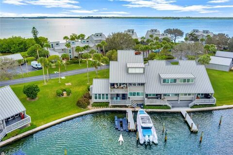 Beautifully renovated in 2019 offering exceptional waterfront living. 1st floor end unit includes 2 deep-water docks, each accommodating boats up to 41. A floating Jet-dock perfect for kayaks or small boats is included. Enjoy stunning views from the condo, screened porch & open patio. Primary bedroom offers water views, a cathedral ceiling & walk-in closet. Impact glass windows/sliders, newer metal roof & direct access to your dock. Community perk: saltwater pool, clubhouse, 24-hr security patrol & Moorings private beach access. One dog/cat up to 50lbs allowed. Sizes approx./subj. to error.