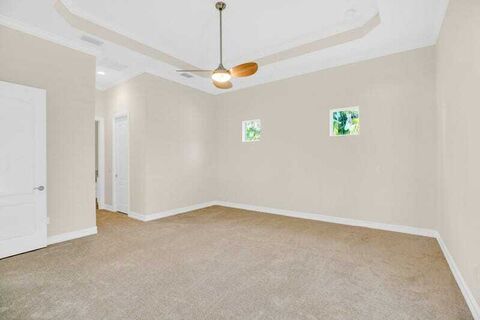 This stunning home with 4-bed, 4.5-bath plus a separate den/office offers approx 3,454 sf of living space on a private .35-acre lot backing up to a preserve. Features include tile & wood floors, plantation shutters, crown molding & granite countertops throughout. Enjoy a saltwater screened pool, impact resistant windows & doors, & 3 car garage. Primary suite is on the 1st floor, with a grand 2nd suite upstairs. HOA covers lawn care for low maintenance lifestyle. Clubhouse, pool, gym, & more. Close to beaches, dining, shopping, & medical facilities. Luxury, comfort & convenience. Rmszapprox