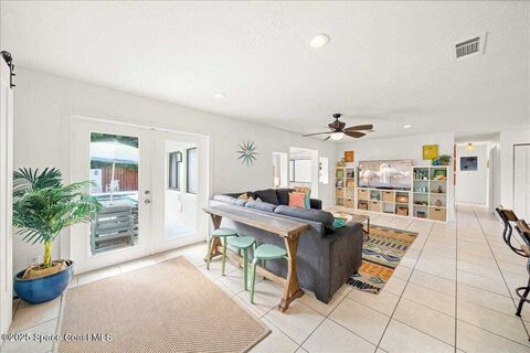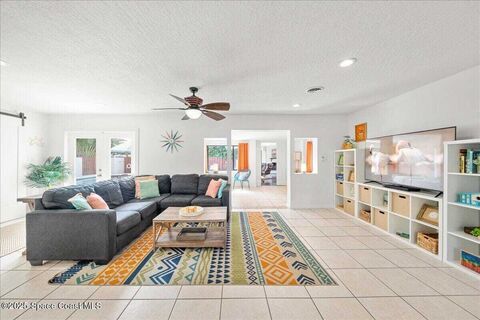 Don't miss this extraordinary, turnkey property, in the heart of downtown Cocoa Beach, perfect as a vacation rental, second home or primary residence! This 4 bedroom, 3 full bathroom, concrete block home offers everything you need for a tropical escape or everyday retreat. With a unique open floor plan and a spacious private swimming pool, its ideal for family gatherings. The fenced backyard will keep your pets and children safe as you enjoy the sunshine! Sitting on a 3rd of an acre corner lot, the home features stunning quartz countertops, custom open shelves and an oversized pool and deck. The thoughtful layout includes a private owner's suite with a fireplace and French doors leading to the pool. Just 2 blocks from the beach and within walking distance to popular restaurants, you're only 5 minutes from Ron Jon Surf Shop, 15 minutes to Port Canaveral and 30 minutes to the Kennedy Space Center. Orlando International Airport and Disney world are both about an hour away. Schedule today