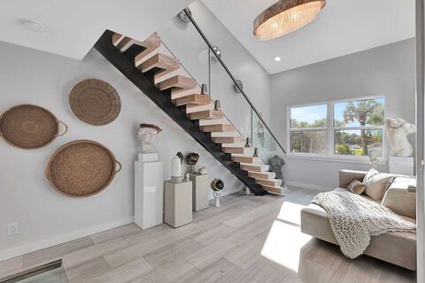 This spectacular, fully renovated riverfront townhome--proudly featured on HGTV's Beachfront Bargain Renovation--redefines luxury with three levels of stylish, turnkey living and the most breathtaking views on North Hutchinson Island.Every detail of this home blends beauty and durability, from the brand-new roof to the all-new impact glass and doors. The open-concept main floor dazzles with a gourmet kitchen, bespoke smart appliances, and stunning Dolomite countertops. Two spacious bedrooms and two elegantly remodeled bathrooms offer unmatched comfort and sophistication. Step outside to three expansive decks, including a private retreat off the master suite, where the unparalleled Intracoastal views will leave you in awe. This is more than a home--it's a rare gem for those seeking lux