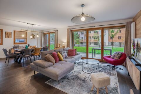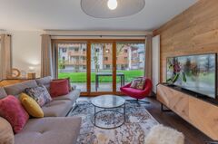 Located in the Prariand area, this 3 three-bedroom apartment on the garden level benefits from excellent exposure. Just a few minutes' walk from the center of Megeve, this residence comprises 4 chalets built in 2022, and features comfortable living spaces. This apartment comprises a living-dining room with open-plan fitted kitchen, access to the garden and terrace, three spacious bedrooms with storage space. Two garage spaces complete this property.