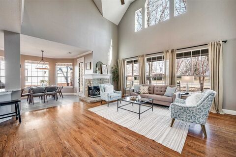 Located a few blocks away from the charm of the Van Alstyne downtown historical district, this home provides walking distance to boutiques, restaurants, concerts, Farmer's Market and buzzing local activities all year long. With a combination of freshly updated exteriors, a well laid out floorplan and backyard just waiting to entertain, this home has it all! The covered front porch and mature shade trees and landscaping offer curb appeal and charm. The entry way feels open and light as it presents the truest form of open concept living. Soaring ceilings, natural lighting and connection to all of the main gathering spaces make this living space both functional and visually appealing. The dining nook is conveniently located off of the kitchen and living space for entertaining and gathering. The kitchen has a butcher block island for meal prep space and additional storage. There is ample cabinet and counter space for all of your culinary needs, as well as a walk in pantry for convenience a