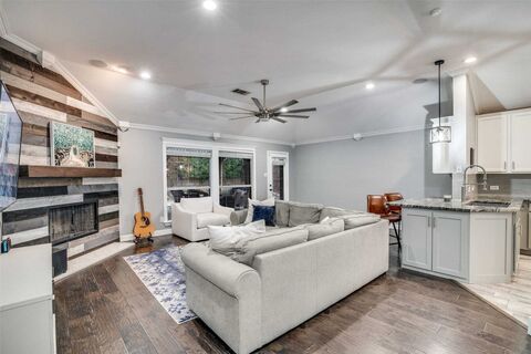 Turnkey and move-in ready! This versatile home offers a flexible floor plan with 3 bedrooms plus a studyideal as a home office or easily used as a 4th bedroom. Enjoy 10-ft ceilings in the main living areas and an expansive open-concept living and dining space perfect for entertaining. The kitchen features granite countertops, a stainless steel appliance package, dedicated coffee bar area, and ample cabinet space. Laminate wood flooring runs throughout with ceramic tile in the bathrooms. The spacious primary suite includes a jetted tub, separate stand-up shower, and dual closets & back-lit mirrors. A backyard retreat offers a beautiful covered patio with built-in grillperfect for relaxed sunset evenings and outdoor gatherings! Easy access to LBJ & I-30!