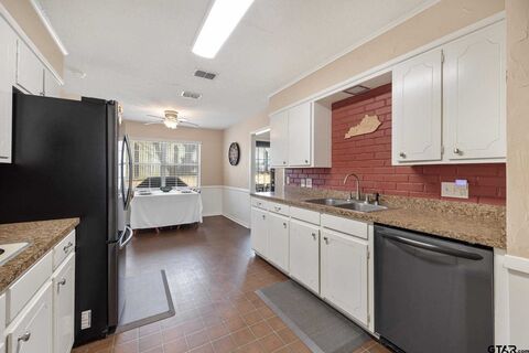 Don't miss this well-maintained and spacious 4-bedroom, 2-bath home located inside the loop in Tyler and zoned to Andy Woods school. Offering two spacious living areas, this flexible layout accommodates everyday living, entertaining, a home office, or additional gathering space. The inviting brick fireplace creates a warm focal point in the main living area, with the chimney swept and gas logs installed in 2021 for added comfort and peace of mind. The kitchen and dining areas flow easily for daily routines and hosting, and the dishwasher was replaced in 2023. Thoughtful updates include a 4-year-old roof and a new HVAC system installed in 2020, providing efficiency and reliability. You'll also appreciate the abundance of storage throughout, with generously sized bedroom closets, additional storage in the laundry room, and a dedicated storage or workbench area in the garage. Step outside to enjoy the fenced backyardideal for outdoor activities, pets, or simply relaxing in your own pr