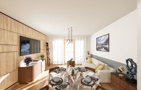 Located in the heart of the city centre of Chamonix, the world capital of skiing and mountaineering, the Blanc Mont Blanc programme enjoys a privileged environment. Bordered by the Couttet park, you will have access to the pedestrian shopping streets as well as the Montenvers train station and the Aiguille du Midi. its architecture, inspired by the traditional codes of the Chamonix identity, reinforces its timeless character, a guarantee of value for your property. You will find this beautiful flat of type T2 with a living area of 51.34 sqm. it is composed of a double bedroom en suite, a kitchen open to the living room with a clear view of the mountains. A cellar, a ski locker and a car park complete the property. VAT refundable Non-contractual visuals.