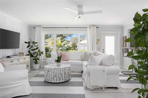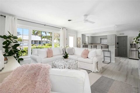 This 3-bed, 2-bath gem in the Vero Beach Country Club neighborhood is the epitome of Florida living. With a newer metal roof, A/C, impact glass, and updated interior including tile flooring and stylish bathrooms, it blends elegance and practicality seamlessly. Enjoy your private pool, oversized covered porch and fenced yard for the ultimate retreat. Just 6 mins from the beach! Its perfect for an Airbnb, ensuring a blend of luxury and investment opportunity. Dont miss this chance to own a piece of paradise! No HOA! Boats and RV friendly. Sizes approx/subj to error. AS-IS.