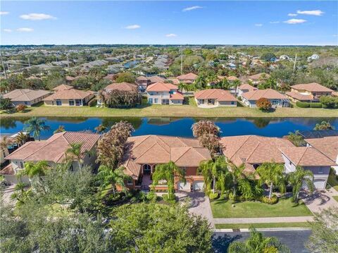 Meticulously landscaped courtyard entry, sculpted gardens and tranquil fountain welcomes you into this beautiful open concept home. Featuring 3BR/3BA (downstairs) large kitchen for entertaining, granite countertops, tile flooring, tray ceilings, crown molding,arched walkways and pond views from most rooms. Spacious loft upstairs with private bath offers flexibility as a 4th bedroom, offiice/media space. Fenced yard, screened patio with dining/grill area. Lawn care/irrigation and gated security included in HOA fees. Minutes to beaches, shopping, hospital, parks, golf. ROOM FOR POOL! Rmszapprox.
