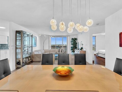 Live the life you love in this beautifully maintained 2-bedroom, 2-bath residence perched high in the desirable Mystic Pointe 500. From the moment you enter 2502, you re welcomed by sweeping bay and Intracoastal views, abundant natural light, and a sense of calm that only waterfront living can provide. The spacious split floor plan is ideal for both everyday comfort and entertaining, featuring expansive living and dining areas with porcelain flooring and warm wood floors in the bedrooms. An upgraded kitchen and remodeled bathrooms add a modern touch, while hurricane shutters throughout provide peace of mind. Additional conveniences include an in-unit full size washer and dryer, assigned parking, and private storage. Mystic Pointe is one of Aventura s most sought-after waterfront communities, offering true resort-style living with 24/7 security, concierge and valet services, marina access, a scenic waterfront walking path, pickleball and tennis courts, basketball, heated pool, fitness center, on-site restaurant, beauty salon, mini-market, and lushly landscaped grounds. Ideally located just minutes from Aventura Mall, pristine beaches, fine dining, houses of worship, and major roadways this is South Florida living at its best.