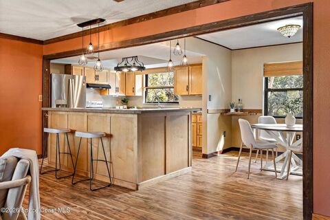 Rare June Park opportunity on a full acre offering exceptional privacy, mature canopy, and classic Florida character. Set on a quiet dead end street, no HOA, no neighbor directly across road, and natural buffers behind the property, this home delivers a level of seclusion that's increasingly hard to find. 3 bed, 2 baths, including an expanded primary suite with private outdoor patio. Vaulted ceilings and a fireplace anchor the den, which opens through to a screened patio overlooking the pool and yard. Updates include: 2023 roof, 2020 HVAC, updated electric panels, recently resurfaced pool & patio, a new water softener and filtration system installed Dec 2025. A portion of the original garage converted to a guest room, and the remaining space is a utility & laundry area. Grounds feature extensive landscaping, mature trees, citrus plantings, and a 16' x 32' powered workshop on slab & additional shed. This is not cookie cutter living. It's land, privacy, and lifestyle. SUPPLEMENTAL PROPER
