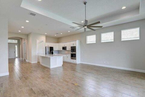 PRICED TO SELL! Like-new GHO home featuring 2 bedrooms plus a den/office or optional 3rd bedroom, 2.5 baths, and a 2-car garage with A/C and epoxy flooring. The gourmet kitchen offers quartz countertops, a large island, double ovens, and stainless-steel appliances, opening to a bright living and dining area with a built-in serving cabinet--ideal for entertaining. Tile flooring throughout, volume ceilings, plantation shutters, and impact windows and doors. The spacious primary suite includes large his-and-her closets. Enjoy a screened porch and private yard backing up to a serene preserve. Resort-style amenities, HOA covers lawn care, irrigation, cable, internet, alarm services, and more. This is an exceptional value in Lake Park at Tradition - 55+ community. Act NOW! szsapproxsubtoerr