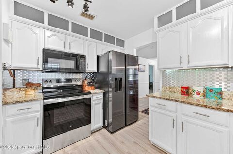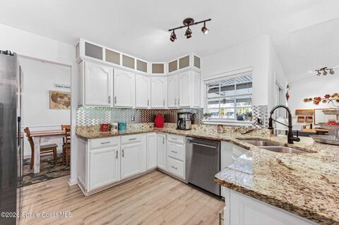 This beautiful home features an amazing outdoor oasis with a saltwater pool and entertainment area, perfect for enjoying your downtime with a built in bar and separate tv area with fireplace. The interior has vaulted ceilings, a split bedroom plan, living, dining and family rooms. The kitchen has newer stainless steel appliances and granite counter tops. The spacious primary bedroom with walk in closet and luxury ensuite bath boasts a garden tub plus separate shower. Plumbing has been updated, the AC was replaced in 2022 and water heater in 2021.The metal roof provides safety during storms as well as hurricane shutters. The fenced back yard has a shed and fire pit area. The home is on a quiet street near schools as well as shopping and restaurants in Bayside Lakes and the Malabar corridor. 30 minutes to the Beach or Melbourne airport. An hour from Orlando airport and Disney. Close to everything yet this home enjoys privacy. No HOA.
