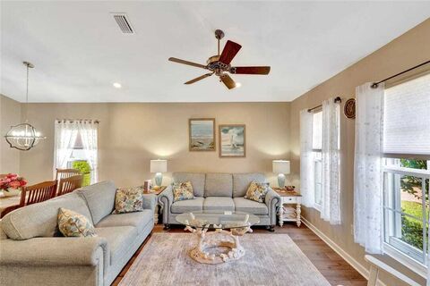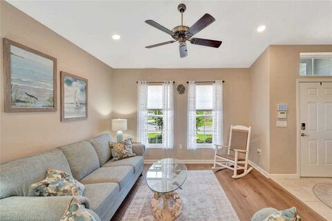 Beautiful 2019 built 3BR/2BA home on a cul-de-sac in a sought-after gated community with possible 4th bedroom! Features: accordion shutters, granite c-tops, SS apps, and upgraded lighting; expansive owners suite with sitting area, Roman tub & walk-in shower. Recent upgrades include interior paint, Mannington LVP in main rooms & owners suite, insulated garage door and generator outlet. Enjoy the screened-in porch, extended driveway, front screen enclosure, enhanced landscaping, privacy fencing, Clusia hedge & large fenced backyard. Low HOA with Resort-style amenities. sizesapproxsubj2error
