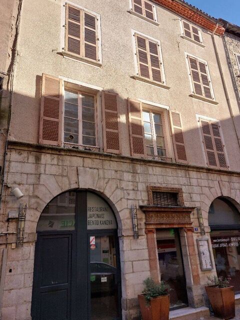 In the heart of the Bastide de Villefranche-de-Rouergue, a stone's throw from the collegiate church, this mixed-use building has a listed facade and offers great potential. It comprises: On the ground floor: a 46 m2 commercial space currently used as a restaurant specializing in takeaway food. It benefits from a full range of professional equipment (cooking, refrigeration, washing up, preparation), as well as a small air-conditioned room with toilets. The first floor has a 19 m2 storage room. On the two upper floors: a two-bedroom duplex apartment of approximately 80 m2, in need of complete renovation, offering numerous possibilities for conversion. A central staircase connects all levels, allowing the business to be easily separated from the living space if necessary. Ideal for continuing commercial activity with living space upstairs, or for any other layout that meets your needs