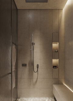 Floor-to-ceiling glazing invites natural light while maintaining privacy through thoughtful landscaping. Externally, expansive decks (66.5 sqm), a sunken lounge (16.8 sqm) and a 41.8 sqm private infinity pool create a seamless indoor-outdoor lifestyle. Additional features include an outdoor shower, beach cabana and service area.