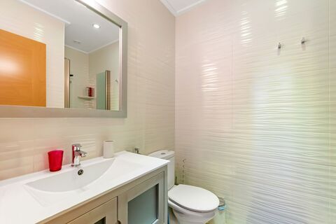 Both bedrooms are spacious and can easily accommodate a double bed. Practical, built-in wardrobes provide plenty of storage and contribute to a stylish and harmonious feel. The two bathrooms have a modern and uniform design with stylish tiles and showers in both, functional, elegant and easy to maintain.