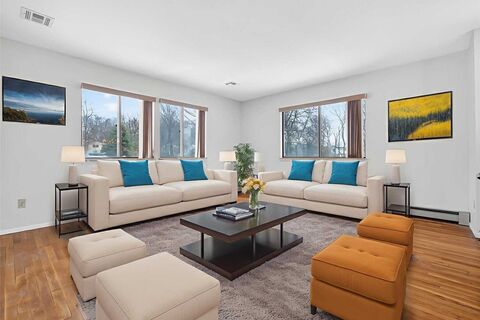 Spacious 4-bedroom, 3-bath home featuring abundant natural sunlight and an open floor plan ideal for both everyday living and entertaining. The main level offers a generous living room filled with natural light, creating a warm and inviting atmosphere, along with comfortable living spaces that flow seamlessly throughout. A walk-out lower level with a family room provides flexible space for recreation, guests, or a home office, while the one-car garage adds convenience and functionality.Situated on a quiet cul-de-sac in the heart of highly desirable Spring Valley, NY, this duplex offers over 2,000 square feet of living space on nearly half an acre of flat property, providing exceptional outdoor space and strong potential to enhance and personalize.Conveniently located just minutes from major highways, parks, shopping, restaurants, and places of worship, with an easy 35-minute commute to the George Washington Bridge. Enjoy accessibility while coming home to a peaceful neighborhood se