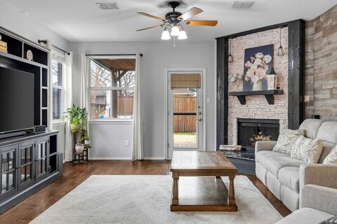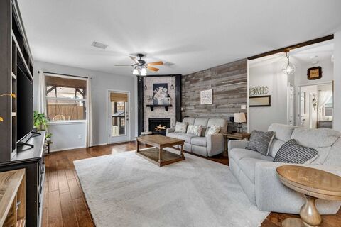Adorable, cozy and immaculate are the words that come to mind when describing this home! Amazing location too, facing a greenbelt, lake and walking path. You will find this home inviting and warm the moment you walk into the entryway. With a living area that could easily be used as an office on your right and a very large dining room on your left, you will notice it is the perfect versatile floor plan. As you continue down the hallway, the very large, updated kitchen and open and inviting family room welcome you. With the wide-open concept kitchen overlooking extremely spacious family room with beautiful fireplace and mantle, you will never want to leave! Very large and private primary suite is separated from the 2 secondary bedrooms. Lovely backyard with a covered patio and room to play. Engineered wood floors and fresh carpet, designer colors, and granite countertops complete this beautiful home.