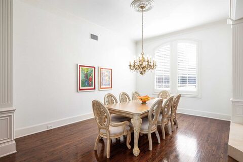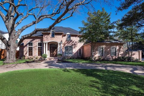 Situated on a oversized (112x150) interior corner lot in the heart of prime Preston Hollow, this stately traditional residence offers an ideal blend of timeless architecture, generous scale, and thoughtful updates by designer, Robin Minter. Open, flowing floor plan is enhanced by soaring ceilings and abundant natural light, creating an inviting atmosphere throughout. Multiple living and dining spaces provide exceptional flexibility for both everyday living and entertaining, including a stunning great room with vaulted ceilings, custom built-ins, fireplace, and walls of windows overlooking the backyard. A handsome study with built-ins offers the perfect work-from-home retreat. The chefs kitchen was updated with Jenn-Air appliances, gas cooktop, double ovens, built-in refrigerator, walk-in pantry, and a spacious island, opening seamlessly to the breakfast and living areas. The desirable first-floor layout includes a private primary suite and split guest suite. The primary suite serves a