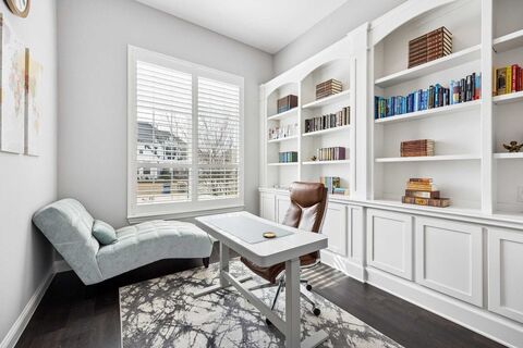 Located in the highly sought-after Mustang Lakes community, this stunning Highland Homes residence showcases exceptional design and quality craftsmanship throughout. With its striking brick and stone faade, stone landscaping borders and inviting front porch, the home offers impressive curb appeal from the moment you arrive. Inside, a private office with French doors and custom built-ins creates the perfect work from home space, while a formal dining room just off the entry is ideal for hosting gatherings. The spacious family room is the heart of the home, highlighted by a dramatic floor to ceiling stone fireplace and a wall of windows overlooking the extended back patio for seamless indoor-outdoor living. The chefs kitchen features quartz countertops, a gas cooktop, double ovens, abundant cabinetry and a bright breakfast nook. A downstairs media room is perfect for movie nights and a convenient pocket office leads to the private primary suite. The primary retreat offers a luxurious e