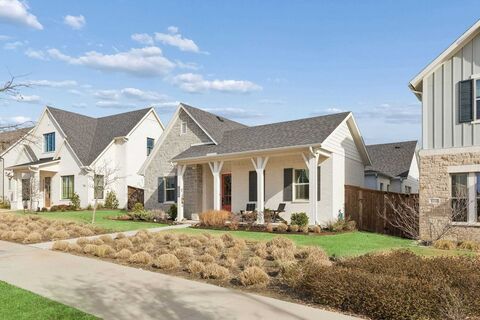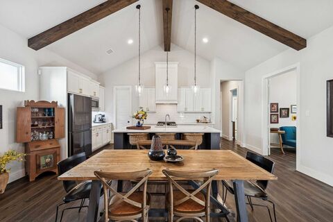 Completed in 2022 by Village Homes, this single story in Walsh offers a layout that makes daily life easy, with open living spaces and thoughtful separation between bedrooms.The main living area is a showstopper, featuring vaulted ceilings with exposed wood beams, and a fireplace that creates a natural gathering space and just the right amount of natural light. The kitchen flows directly into the dining and living areas and includes an oversized island, gas cooking, stainless steel appliances, a walk-in pantry, plus generous storage and prep space, making it ideal for everyday living or hosting friends. Its easy to see why guests naturally gather here and why the home has become a favorite for entertaining.A flexible bonus room with French doors can serve as a home office, separate living area, or playroom, allowing the home to adapt as your needs change. Outside, the welcoming front porch, covered side patio, and private backyard provide multiple places to relax with minimal main