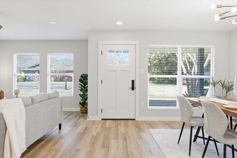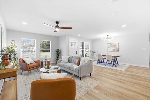 Juicy like a tangerine, this freshly renovated, from-the-studs-up stunner is pure sunshine! Imagine waking up every day to an open-concept layout, the hottest kitchen youve seen, and bathrooms worthy of a design magazine spread.Specializing in residential renovation, the contractor made smart, intentional design choices throughout. Structural beams create a seamless expanse, blending the kitchen, dining, and living areas into one fabulous, light-filled space. The effect? Effortless and wow-worthy.Designer touches are everywhere: matte black door hardware, LED can lights, chandeliers and sconces, sleek three-blade wood-look fans, waterfall-edge tub faucets with hand-held wands, backlit vanity mirrors, J&K Custom kitchen cabinets with chunky gold pulls, wood display shelving, and wardrobe closets.Now for the equally important upgrades: 30-year architectural shingle roof, high-efficiency tankless water heater, 3-ton Carrier 14 SEER gas furnace, all-new electrical, brand-new p