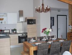 On the ground floor of an authentic village house, come and discover this beautiful 89 sq.m apartment in wood and stone in Montriond. it comprises a large, fully-equipped kitchen opening onto a spacious living room with a wood-burning stove and access to a balcony. There is also an en suite double bedroom with shower room and WC, as well as two double bedrooms and a shower room + WC. Two outdoor parking spaces are also available with the flat.