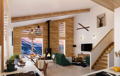 ideally located in the charming village of Hauteluce, just 350 meters from the slopes, this intimate development consists of 5 semi-chalets and 4 apartments. Nestled in a peaceful, unspoiled setting, the residence offers panoramic views of the Beaufortain mountain range. Blending authenticity and modernity, it stands out for its high-quality materials and architecture that harmonizes with the natural surroundings. The homes feature bright living spaces extended by generous outdoor areas, creating a warm and elegant atmosphere. Each unit includes a private garage and an outdoor parking space. This spacious triplex offers three double bedrooms on the ground floor, including a master suite, as well as a shower room and laundry room. Two of the bedrooms open onto a pleasant terrace, perfect for enjoying the peaceful surroundings. Upstairs, you'll find a fourth en suite bedroom and a spacious living room with high ceilings. The fully-equipped kitchen extends the living space onto a south-facing balcony, ideal for soaking up the sun all day long. Finally, the top floor features a mezzanine with a mountain area, perfect for an extra sleeping or relaxation area. Delivery scheduled for late 2026 VAT refundable