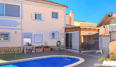 4 Bed Detached Villa With Pool in Loule Algarve - located in Goncinha between Loule and Almancil and just 5 minutes from Mar Shopping is this 191m2 villa with 4 bedrooms, 4 bathrooms with a garage and plenty of parking with a solar heated swimming pool also. The villa comprises a living room which connects to the adjacent dining room with a modern kitchen and breakfast room with high-quality finishes and Bosch appliances. There are 2 ground floor bedrooms with one currently used as an office and 2 bathrooms with one being an en-suite, One of the bedrooms is en-suite with fitted wardrobes. There is also a second bedroom that has been converted into an office, as well as a ground-floor bathroom. On the upper floor, there is a covered balcony, a master suite with an en-suite bathroom and walk-in closet, and a large second bedroom containing a luxury bathroom with a triple shower and a bathtub. This property features wooden flooring throughout as well as cutting-edge technology to include a lighting system, photovoltaic panels with battery storage, solar-powered water heating and central air conditioning. There is also a wood-fired heat exchanger. The outdoor leisure area is connected by a pergola with sliding glass curtains and features a solar - heated swimming pool, and a low-maintenance garden with automatic irrigation. There is plenty of off-road parking plus a garage. in brief: - entrance - lounge area - dining area - kitchen & breakfast room - 4 bedrooms - 4 bathrooms - garage - heated pool - gardens Loule is a small town located in the heart of the Algarve known for its traditional architecture and laidback lifestyle. Loule is also known for its Municipal Market where you can smell and taste the amazing traditional snacks and fresh products; also, you can visit the castle of Loule and the 13th-century church named after the city's patron saint Sao Clemente. The town is located within approximately 20 minutes from the beach, 10 minutes from the Mar Shopping Centre and Outlet and 18 minutes from Faro Airport.