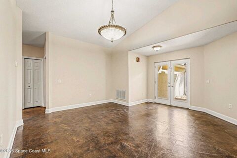 Spacious 3 bedroom, 2 bath townhome with private lot just steps from the beach, offering comfortable coastal living in a well-maintained 2006 construction. High vaulted ceilings and generous living areas create an open, airy feel, while the kitchen features granite countertops and wood cabinetry. Windows throughout include built-in wooden blinds for added style and convenience. The primary suite offers dual his-and-hers closets, an en-suite bath with a sunken tub, separate shower and vanity, plus an attached office ideal for remote work or flex space. Recent updates include 2021 HVAC, 2023 water heater. Feel secure. Built with comfort & resilience in mind, the home features a metal roof & hurricane shutters that adds peace of mind. The spacious backyard provides plenty of room for outdoor living with potential space for a future pool. No HOA. Located in desirable Satellite Beach near the ocean, shopping, dining, and local conveniences.