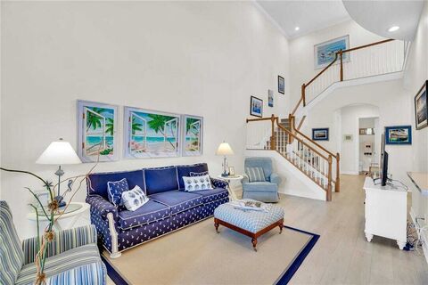 Exceptional coastal residence in beautiful move in ready condition featuring tastefully updated kitchen with newer appliances, quality finishes, and meticulous maintenance throughout. Pride of ownership is evident in every detail. This spacious residence offers the flexibility of the primary suite option, upstairs or downstairs. Enjoy the light-filled interior with volume ceilings and an expansive outdoor patio designed for effortless entertaining. Sizes are approx/subj to???????????????????????? error.