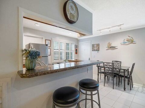 FULL PRICE OFFER INCLUDES FURNITURE! Fantastic 1st floor Unit! Directly across from the pool & clubhouse, this beautifully maintained 2/2 condo offers a peaceful garden view from enclosed porch complete w/impact windows & door installed in 2017. HVAC -2020, water heater -2023. Kitchen & baths are tastefully updated & easy-care tile flooring throughout. Desirable, one of the best 55+ waterfront community, close to beach, river, shopping, dining, & medical facilities. Incredible value, lifestyle convenience, & serene surroundings. Rmszapprox