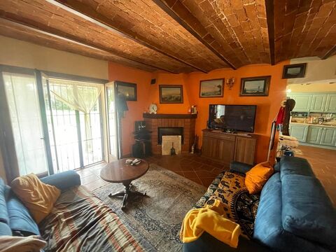 The property benefits from an excellent south-west exposure and a view that sweeps across the countryside to the sea. The surrounding 2,000 sqm garden hosts a large 19x7 meter swimming pool with its technical room. Beyond the garden, the estate includes 7,000 sqm of fully fenced agricultural land accessed via an automatic gate, featuring approximately 100 productive olive trees, 400 Vermentino vines, and 1,500 Sangiovese vines, as well as a dedicated vegetable garden area. Access is easy via a short stretch of unpaved road (300 m). There is also the possibility to separately purchase an additional 3 hectares of surrounding woodland.
