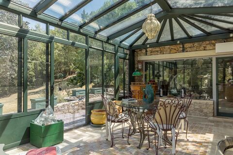 This house is a jewel for stone lovers. With a comfortable surface area of 245 sqm, it offers three large en-suite bedrooms, a cosy living room with fireplace, a dining kitchen and a pleasant veranda with views over the garden. The 6,000 sqm land offers numerous flower-filled terraces, a romantic gazebo, an infinity pool and an exotic wooden deck. Charm and tranquillity for nature lovers. Walking distance from shops. Possibility of extension.