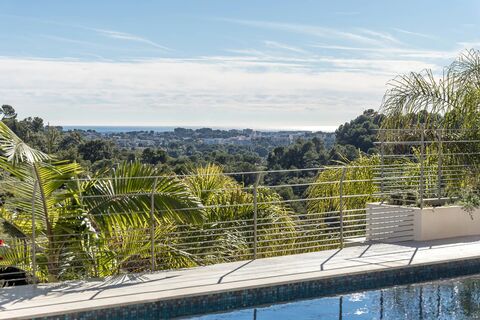 This newly built villa of about 365 sqm is facing south and is composed on the ground floor of a beautiful reception with a cathedral living room and a large kitchen opening onto the pool and the garden as well as a beautiful master bedroom. On the first floor there are three bedrooms with bathroom or shower and on the ground floor an independent flat, a large garage for up to 5 cars and plenty of storage space.