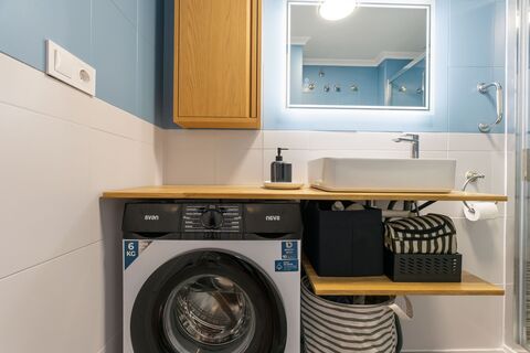 The bathroom is tastefully decorated with modern details and a functional shower. The fresh interior gives a pleasant feeling and offers everything you need.