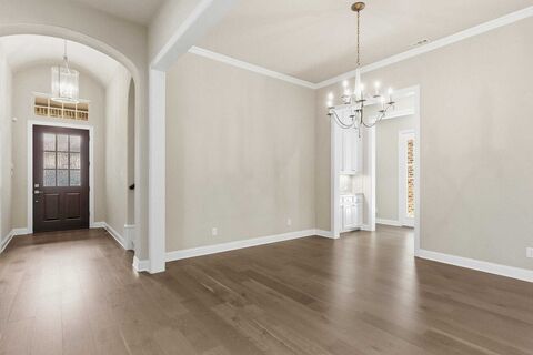 Welcome to 2921 Gentle Creek Estates, a stunning Huntington showcase. This 5-bedroom home features each bedroom with its own private bathroom, offering exceptional comfort and privacy. Spanning 4,246 square feet, four of the ensuite bedrooms are located downstairs, including the luxurious primary suite. The elegant living area is anchored by rich dark wood beams and a dramatic stone fireplace with a beautiful wood mantle. A formal dining room provides the perfect setting for gatherings. Shutters and electric shades are featured throughout. The gourmet kitchen is beautifully appointed with a built-in refrigerator, cooktop with pot filler, and double built-in ovensall stainless steelplus abundant cabinetry and a convenient butlers pantry. The downstairs primary suite features a bay window and spa-inspired bath with custom tile and built-in linen storage. A private office with French doors and beautifully built-in shelving offers a refined workspace. Separate from the office, a built-i