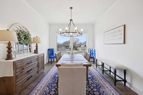Welcome to 7224 Smith Farm Road North Richland Hillswhere refined design meets everyday comfort in a setting that feels both inviting and connected.Perfectly positioned with green space behind and alongside the home, this property offers privacy and serene views youll appreciate year-round. Step inside and youre immediately greeted by a peaceful working office soaring cathedral ceilings accented with striking beams, creating a dramatic yet inviting first impression. Natural light pours through generous windows, highlighting custom built-in cabinetry with soft accent lighting and a cozy gas log fireplace. The heart of the home is the stunning kitchendesigned for both entertaining and effortless daily living. A spacious layout features quartz countertops, a statement farmhouse apron sink, gas cooktop, built-in refrigerator, and coffee bar complete with beverage refrigerator. Whether hosting friends or enjoying a quiet morning coffee, this space seamlessly connects beauty and fun