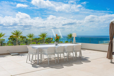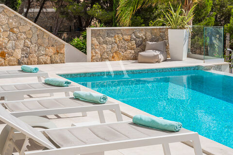 Geniessen Sie den Pool im Freien und mit bester Sud-Ausrichtung oder entspannen Sie auf der Dachterrasse, die mit einem einzigartigen Panorama-Blick auf das Mittelmeer, einer Aussenkuche und einem Loungebereich ausgestattet ist.