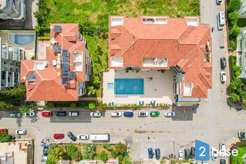 Ersoy Apart Oba is a residential complex in Alanya Oba, featuring two buildings with five floors, a communal swimming pool, children's pool, and landscaped gardens. Located two minutes' walk from the city centre and ten minutes from the beach, it offers convenient access to markets, parks, and weekly farmers' markets in a quiet neighbourhood.