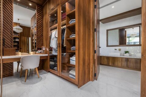 Covered poolside lounging and dining areas, along with a sunken lounge beside the pool, create a seamless indoor-outdoor lifestyle. Private covered parking accommodates up to 6 cars, in addition to an indoor garage suitable for vehicles, a workshop or 2-3 large motorbikes.