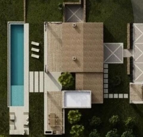 Outside, expansive terraces overlook the Mediterranean-style garden and the impressive 60 m2 infinity saltwater pool with natural stone cladding and stylish lounge areas. Modern comforts include A/C, underfloor heating, smart home and alarm systems, video surveillance. The property features a private driveway with electric gate, spacious underground garage, and EV charging connection. It is connected to city electricity and water, with additional self-sufficient capability via photovoltaic panels and a cistern, plus the option to apply for a private well.