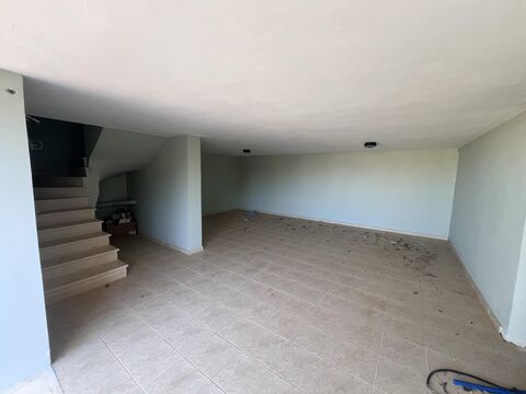 The upper floor consists of two additional bedrooms and one bathroom, all enjoying natural light and open views. The house is equipped with air-conditioning units in all rooms and aluminum window frames, ensuring year-round comfort.