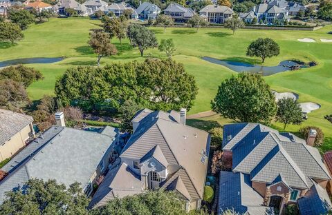 OPEN HOUSE THIS SUNDAY 2-4PM! Discover an extraordinary opportunity in Friscos prestigious Stonebriar Villagea gated-guarded-resort-style community known for its five-star amenities & coveted lifestyle. Tucked away on a quiet cul-de-sac, this exquisite Steve Roberts custom home is perfectly positioned on an elevated lot, offering breathtaking views of the 7th & 15th fairways that will give Augusta National a run for its money. Inside, timeless architecture-refined finishes-generously scaled rms set a sophisticated tone. A dramatic entry welcomes you w-soaring ceilings-a sweeping staircase & magical golf & water vistas. The elegant DR overlooks a serene atrium filled w-lush greenery & a tranquil water feature. The inviting family rm features custom built-ins-a cozy fireplace-a convenient wet bar-all flowing seamlessly into the kitchen w-gas cktp-dbl ovens-buitl-in fridge-butlers pantry-a sunlit brkfst rmideal for both everyday living & effortless entertaining. The private primary
