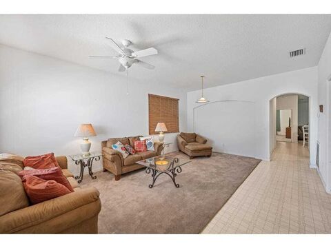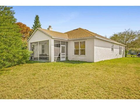 Tucked in the rear of the quaint neighborhood of Chase Meadows on a cul-de-sac, this home features over 2,200 sq ft of living space with 3 bedrooms, 2 baths, a spacious den/office that could easily be used as a 4th bedroom, plus an add'l 10x9 indoor storage room! Recent updates include a new roof (2020), garage door (2021), water heater (2021), & a new Stainless refrigerator installed in 2025. Home offers full hurricane shutter protection & the only wood burning fireplace in the community! Low HOA fees of $202/month include lawn care. $7,500 flooring/paint credit w/ acceptable offer.