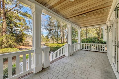 Grand home on the #6 hole of the Jack Nicklaus golf course in Landfall. Includes detailed moldings, hardwood floors, 2 story foyer, double back porch, and first floor primary bedroom. Enjoy the views of the golf course and Howe Creek from the back of the home.