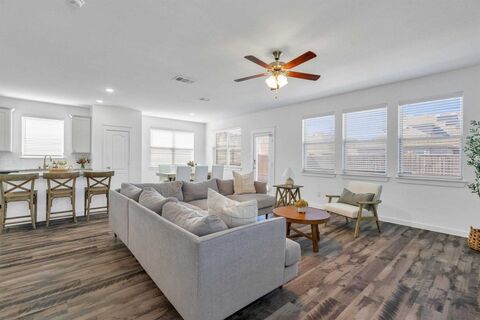 Built by Gehan Homes and thoughtfully designed for space and function, this 4-bedroom, 2.5-bath home delivers the layout buyers are asking for. All bedrooms are upstairs, along with a second living area, giving everyone room to spread out while keeping the main floor open and inviting. The open-concept kitchen features gas appliances and flows seamlessly into the living and dining areas, making it ideal for hosting or everyday life. Home has flexible bonus room offers the perfect setup for a tech center, art studio, or dedicated pet space. Step outside to a nicely sized backyard with an extended 20x10 patio, ready for weekend gatherings and evening relaxation. Sprinkler system, builder warranty and home warranty included. Community amenities include a pool, playground, and walking trails throughout the neighborhood. Conveniently and just minutes from Costco, HEB, restaurants, and shopping. Schedule your showing today.