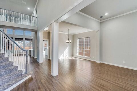 If youve been searching for a home that instantly feels warm, welcoming, and completely move-in ready, this is the one. Nestled in an established neighborhood just a short walk from Creekview High School, this beautifully remodeled two-story home offers 5 spacious bedrooms and 4 full baths, with thoughtful updates & timeless finishes throughout.From the moment you step inside, youll notice how every single room has been thoughtfully updated. The open floor plan flows effortlessly, anchored by a stunning kitchen that feels like the heart of the home. Imagine morning coffee at the quartz countertops, surrounded by crisp white shaker cabinets with soft-close drawers, a glass tile backsplash, and stainless steel appliances. The kitchen opens seamlessly to a grand family room with soaring two-story ceilings and a beautifully remodeled fireplacecreating a light, airy space perfect for holidays, birthdays, and everyday life. Downstairs features luxury waterproof vinyl flooring throughout t