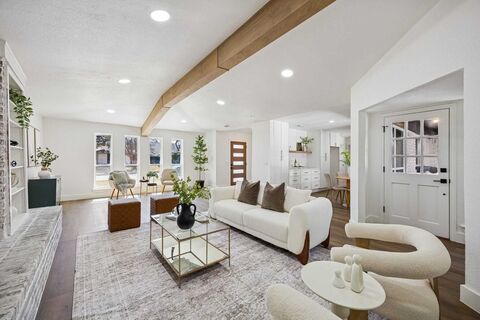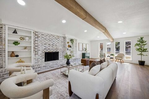 Discover 2861 Meadowbrook Drive, a fully renovated residence showcasing sophisticated design, quality upgrades, and exceptional attention to detail. This stunning home delivers modern living with timeless appeal in every space. From the moment you arrive, youll be drawn to the crisp white brick exterior, new windows, new front door, new driveway and freshly installed fence with an automatic gate that offers privacy. The inviting curb appeal sets the tone for what awaits inside. Step through the door into a light-filled interior featuring decorative lighting, warm wood flooring, and thoughtfully curated finishes throughout. The spacious living room is a true showpiece, highlighted by a stunning painted brick fireplace with built-in shelving and a statement wood beam overhead that creates the perfect setting for relaxing evenings or lively gatherings. The fully updated kitchen blends beauty and functionality with sleek cabinetry, modern hardware, stainless steel appliances, and abundant