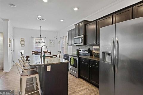 Introducing 394 Hawthorn Drive, Dallas, GA-an inviting 5-bedroom residence perfectly situated on a prominent corner lot within the sought-after North Paulding High district. As you step into the grand two-story foyer, the formal dining room awaits to your right, elegantly accented with wainscoting and stunning arched entryways. The kitchen boasts stainless steel appliances, sleek granite countertops, and a stylish tiled backsplash, seamlessly overlooking both the cozy breakfast area and the expansive living room. Enjoy recessed lighting and a wood burning fireplace, creating an ideal space for relaxation and entertainment. A bedroom and full bath on the main level provide flexibility for multi-generational living, making this home both functional and welcoming for families of all sizes. Upstairs, you'll discover four additional bedrooms, a guest bath, and a conveniently located laundry room. The spacious primary bedroom impresses with its vaulted ceiling and abundant natural light. The