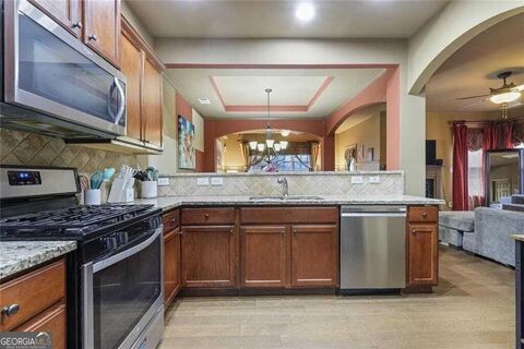 Welcome to 1951 Bay Beauty Lane, a stunning residence located in the desirable Mill Park community. This exceptional 3-bedroom, 2.5-bath home was originally designed as the Model home for the neighborhood and comes equipped with numerous upgrades. The property features a welcoming two-story foyer, an open floor plan, and a fenced backyard, providing both comfort and security. The chef's kitchen is a highlight, boasting granite countertops, a tiled backsplash, and stainless-steel appliances. Adjacent to the kitchen, the elegant dining room showcases an arched entry and a trayed ceiling, making it the perfect setting for entertaining guests. The spacious living area is enhanced by a gas log fireplace, hardwood flooring that is only two months old, and extensive wood trim throughout. The home is equipped with Smart Home technology, including a security system and a video doorbell for added peace of mind. At the rear of the property, a sunroom offers a relaxing space to enjoy views of the